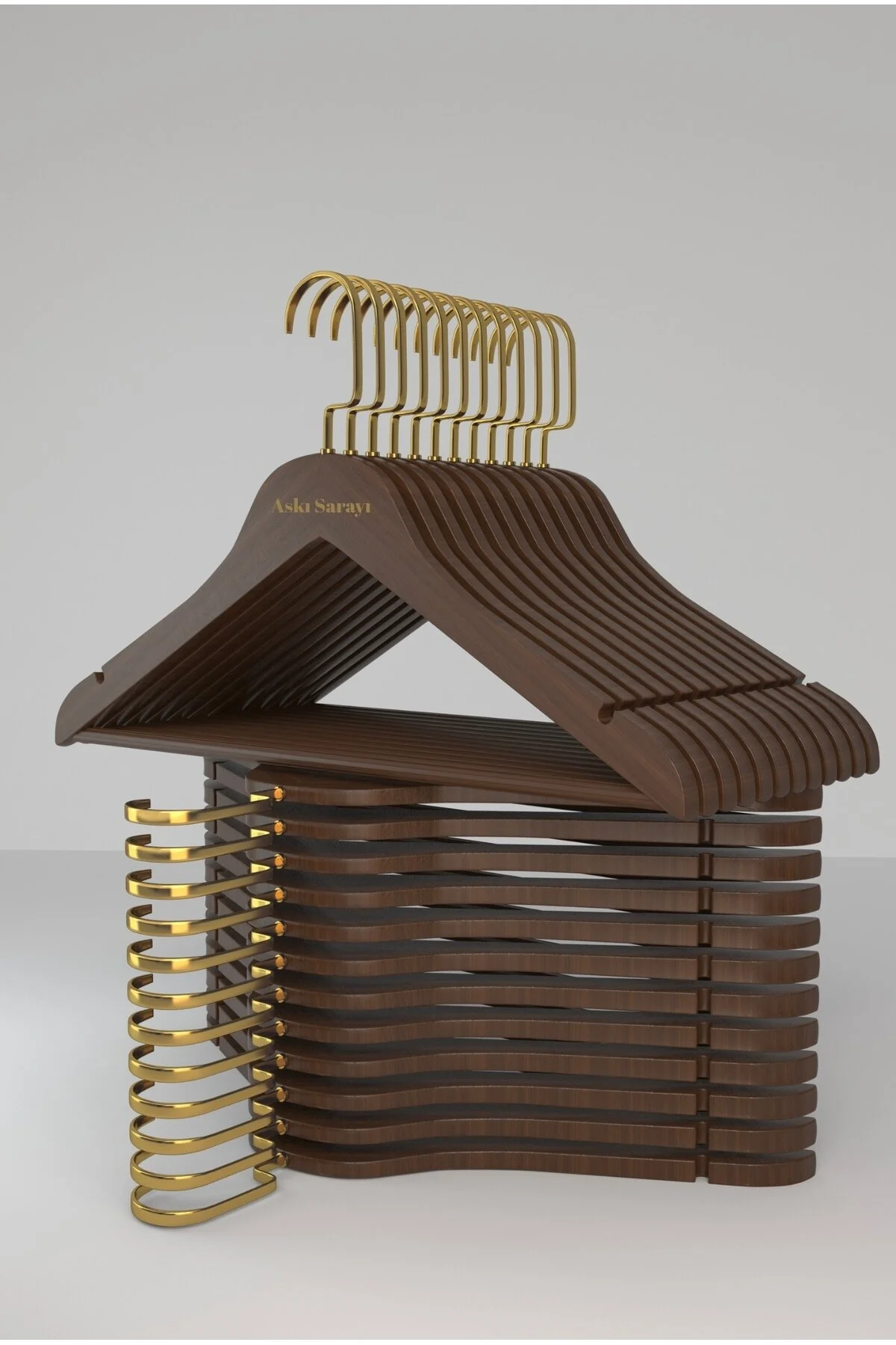 CEVİZ AHŞAP ASKI ELBİSE PANTOLON ETEK GÖMLEK BLUZ GİYSİ KIYAFET ASKISI ÖZEL GOLD AMERİKAN KANCA
