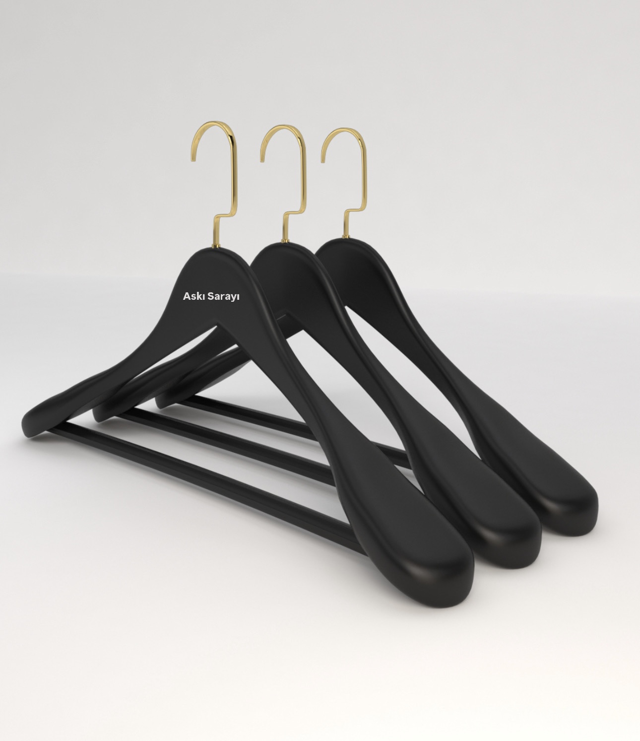 SİYAH AHŞAP CEKET ASKİSİ PALTO ASKİSİ TAKİM ELBİSE ASKİSİ AMERİKAN KANCALI ÖZEL TASARIM