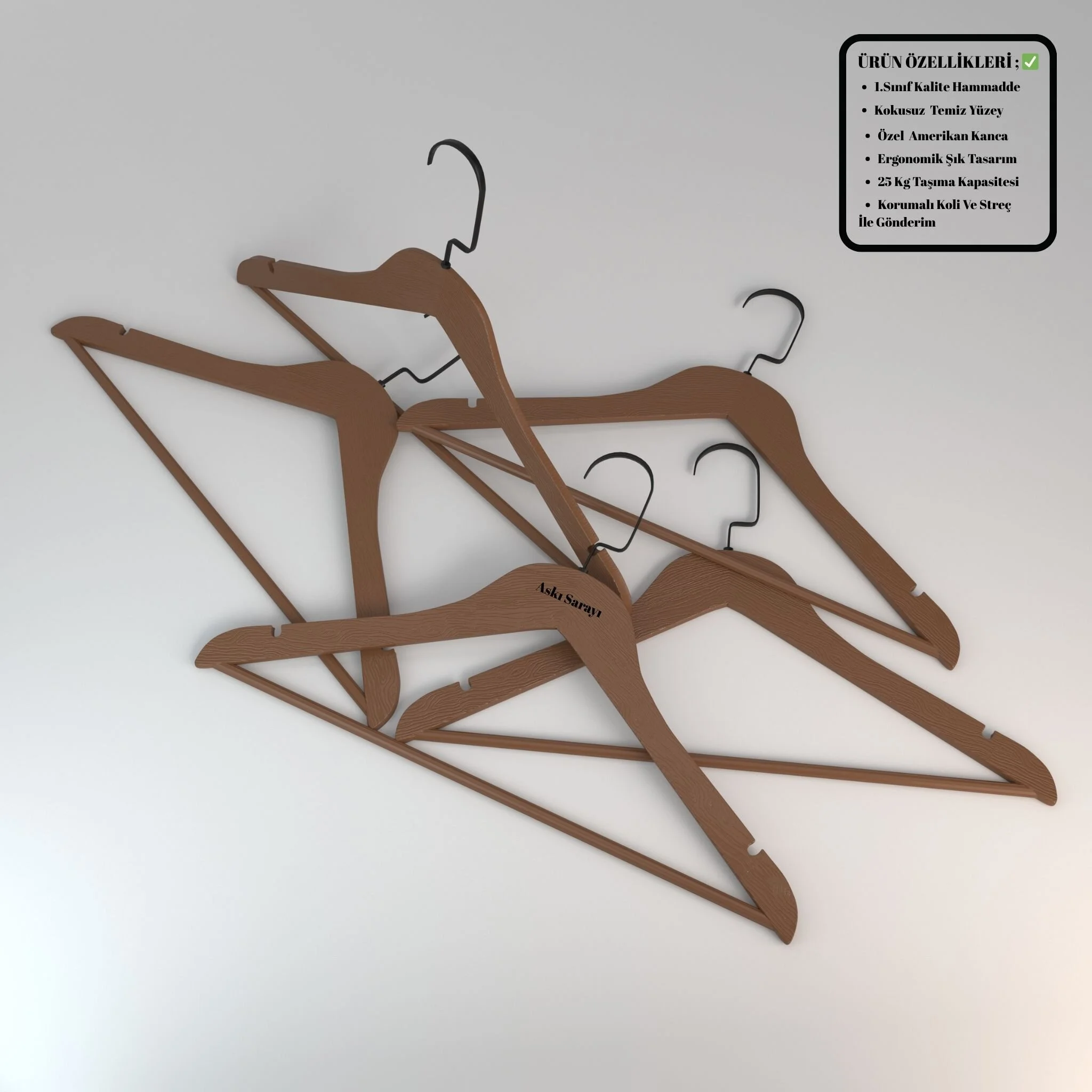 Bej ve ceviz rengi olarak iki takım aldım. Bej rengini kendime ceviz rengini eşime aldım ikimizde çok beğendik ahşap askıya göre bize daha mantıklı geldi ilgili arkadaşa nazik davranışı için teşekkür ediyorum