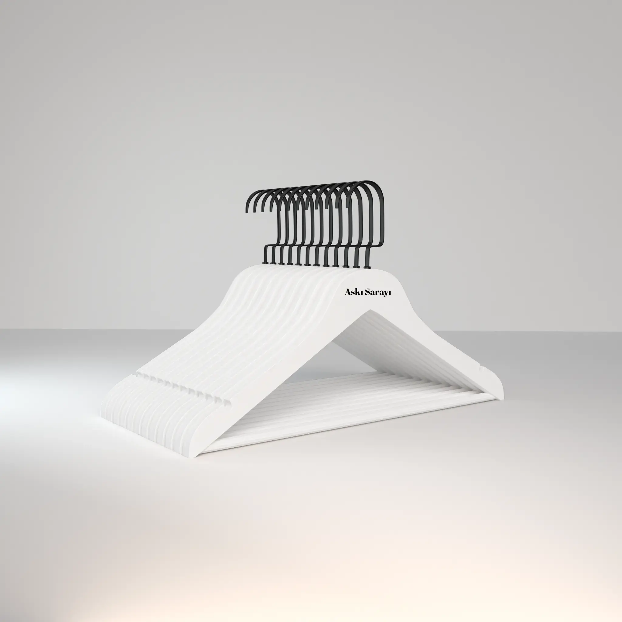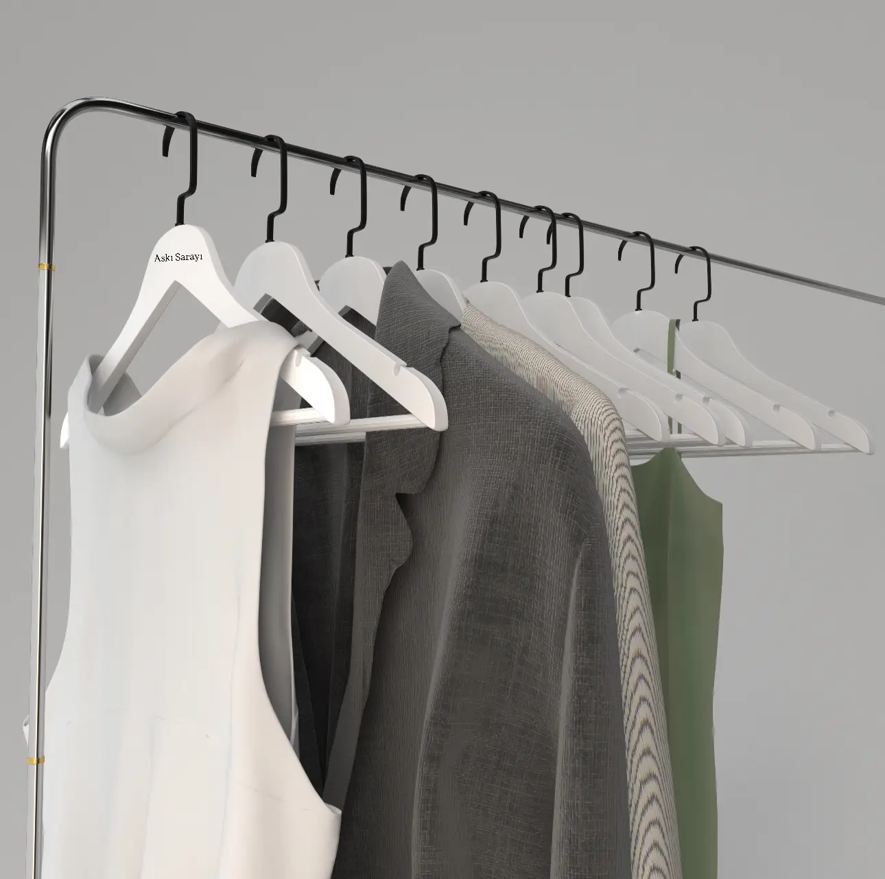 AHŞAP ASKI ELBİSE PANTOLON ETEK GÖMLEK BLUZ GİYSİ KIYAFET ASKISI ÖZEL SİYAH AMERİKAN KANCA