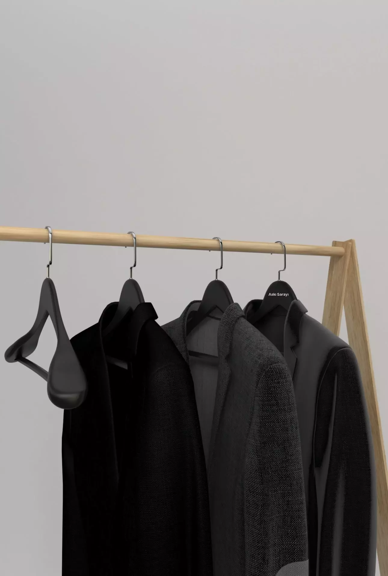 Siyah Ahşap Ceket Askısı Özel Amerikan Kancalı