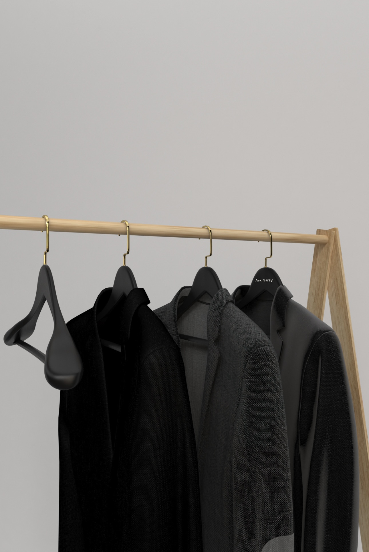 SİYAH AHŞAP CEKET ASKİSİ PALTO ASKİSİ TAKİM ELBİSE ASKİSİ AMERİKAN KANCALI ÖZEL TASARIM